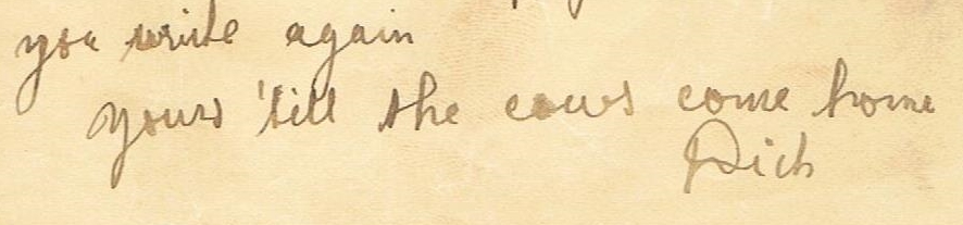Both his brother Harry and sister Sophie named their sons Richard in his honour. Until they passed away, all his siblings liked to recall the adventures and antics of their beloved brother Dick.